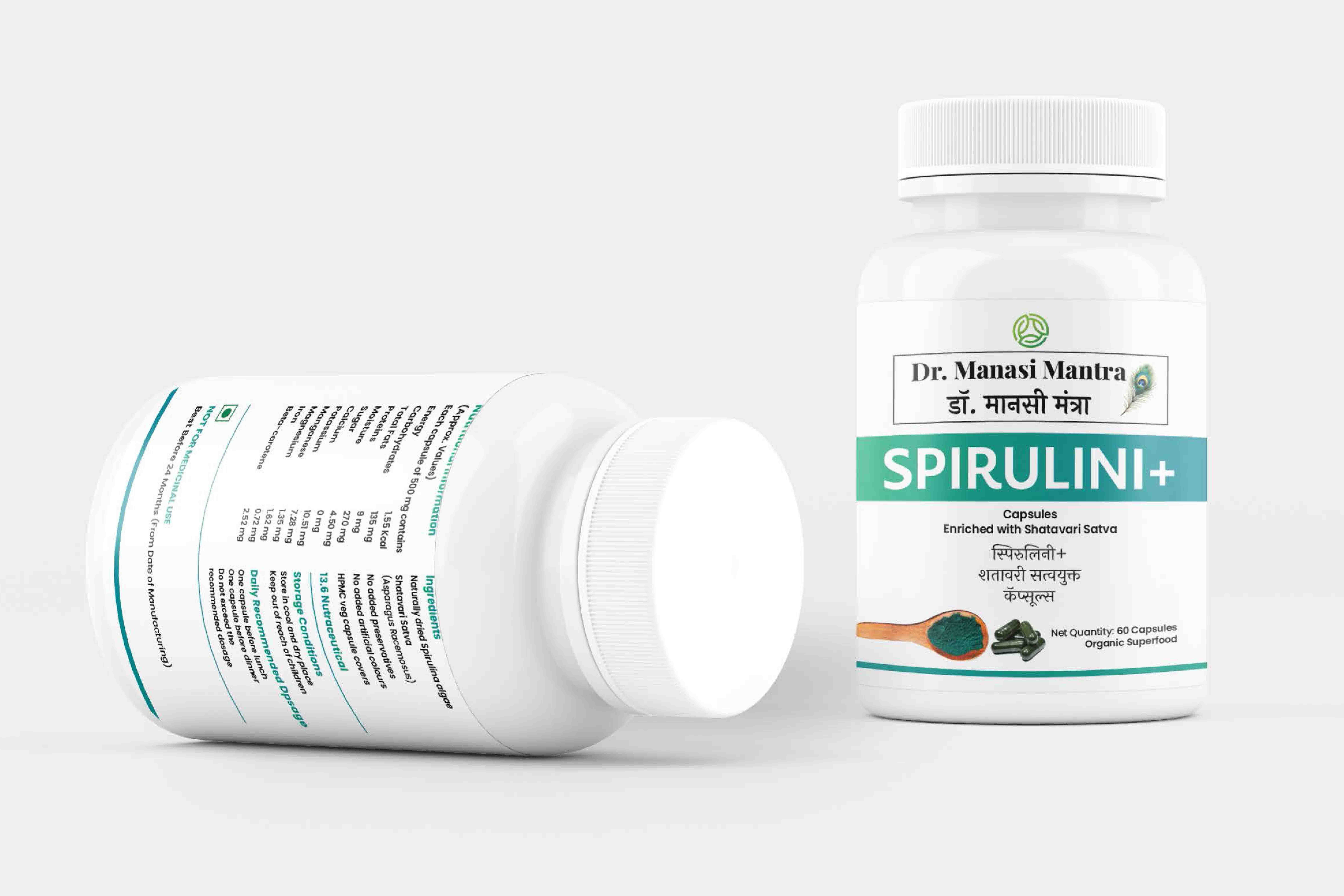 Spirulini+ Capsules by Dr. Manasi Mantra are a natural health supplement made from pure spirulina enriched with Shatavari Satva. It is a simple daily nutrition support for complete family health. Spirulini+ helps improve energy, digestion, skin glow, immunity, sleep quality and overall strength. It works as a gentle tonic suitable for men, women, senior citizens and growing children.